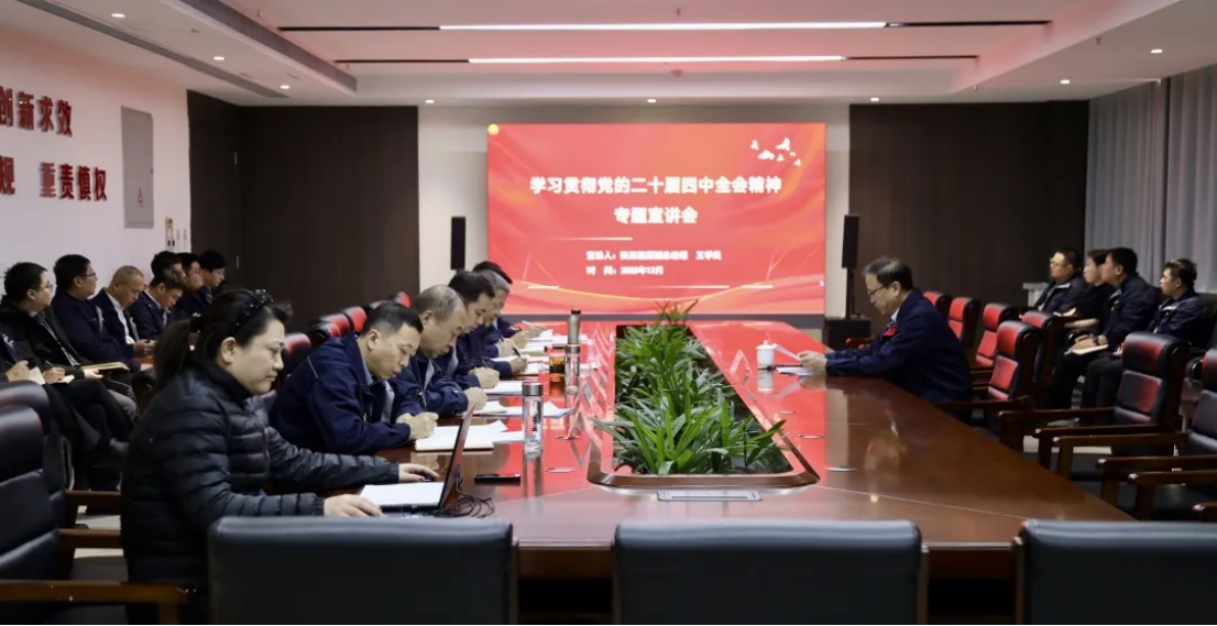 12月30日,陜西能源副總經(jīng)理王學(xué)民到趙石畔運(yùn)營(yíng)開展學(xué)習(xí)貫徹黨的二十屆四中全會(huì)精神專題宣講,會(huì)議由公司黨委書記、執(zhí)行董事主持,其他領(lǐng)導(dǎo)班子成員,各黨支部書記,各部門、區(qū)隊(duì)負(fù)責(zé)人參加。