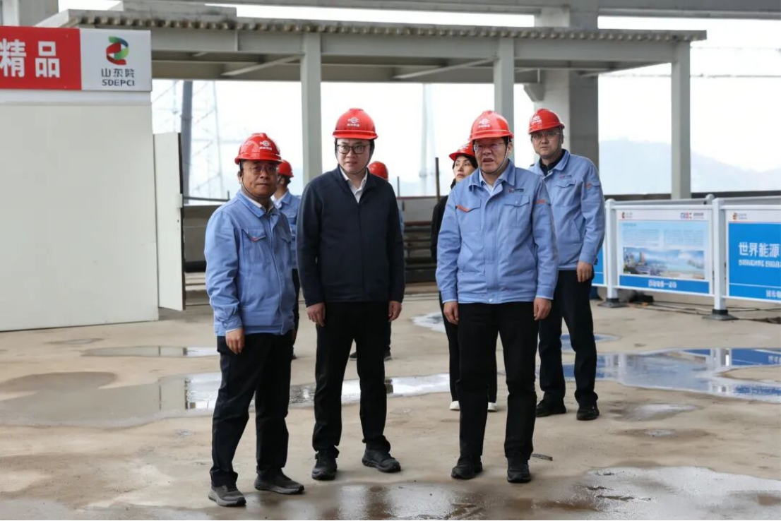 王琛一行會后深入信豐能源2×1000MW機組工程項目建設現場調研,實地了解項目整體施工進度,在主廠房17.5米運轉層平臺,仔細查看了設備安裝進展和現場作業組織情況,聽取了關鍵工序施工工藝、安全質量管控措施及當前情況匯報,并強調要緊盯節點目標,優化施工組織,在確保安全和質量的前提下,全力以赴推動項目建設提速增效,力爭早日投產達效。
