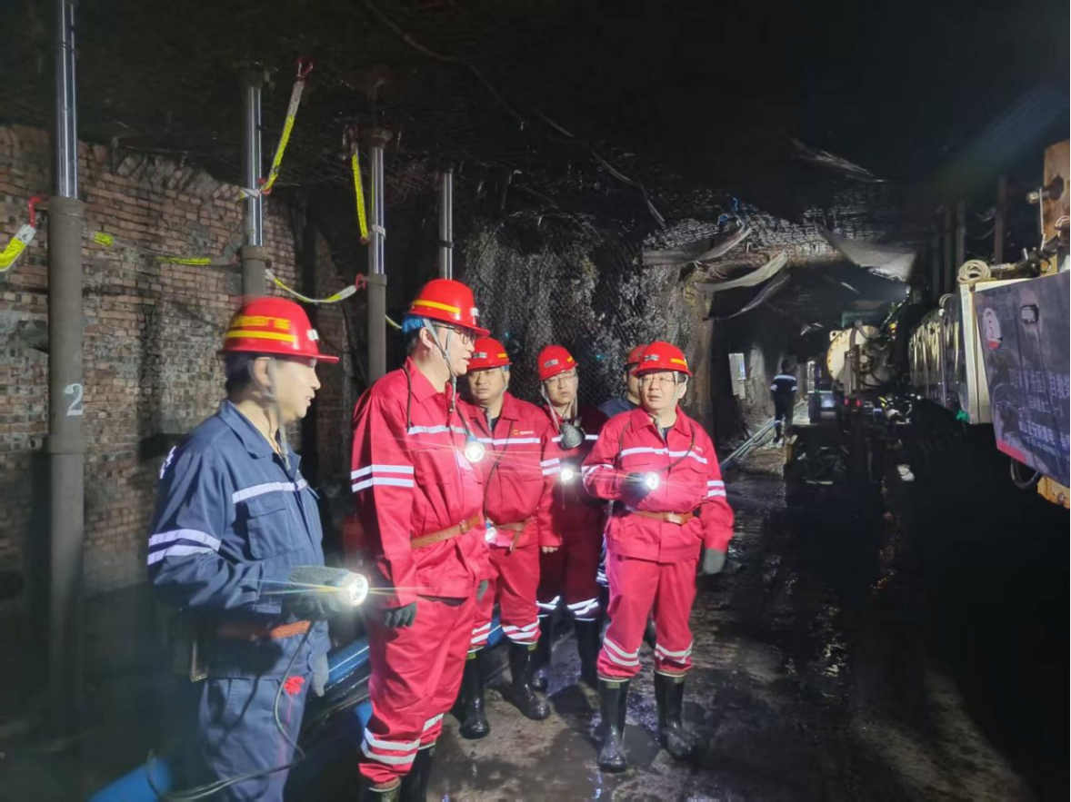 王琛一行參觀了趙石畔運營沙盤,聽取了項目概況、礦井設計及建設進度、采掘部署等情況。隨后,深入井下作業現場,對30101綜采工作面、輔助運輸大巷、井底車場等地點進行了檢查,詳細了解了礦井近期安全生產狀況、工作面設備性能及煤質情況。重點查看了應急物資儲備情況、智能化系統運行成效及現場安全管控落實等情況。