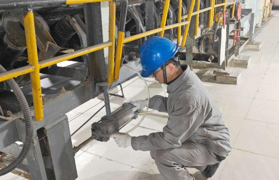 三期石膏皮帶輸送機(jī)跑偏問題長期困擾系統(tǒng)穩(wěn)定運(yùn)行,灰燃專業(yè)主動(dòng)作為加裝自動(dòng)糾偏裝置,從廢舊資源中篩選出可用的氣缸等部件,自制跑偏開關(guān),通過檢測修復(fù)與重新組裝,成功打造出一套自動(dòng)糾偏裝置。安裝調(diào)試后,皮帶運(yùn)行穩(wěn)定、軌跡居中,實(shí)現(xiàn)了持續(xù)自動(dòng)糾偏,提升了系統(tǒng)自動(dòng)化水平與運(yùn)行可靠性。