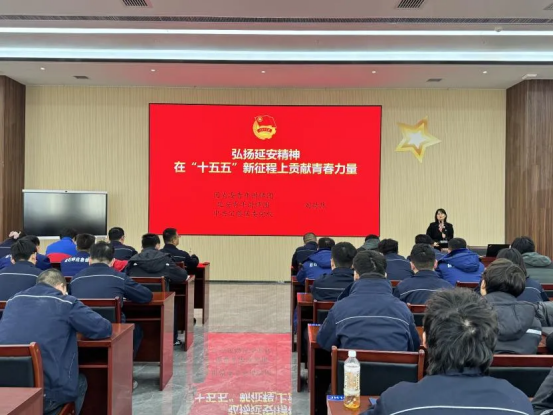 劉赫然老師以《弘揚延安精神在“十五五”新征程上貢獻青春力量》為題,從延安精神的歷史淵源、豐富內涵和時代價值等維度展開宣講。通過結合大量鮮活的歷史案例和延安青年的奮斗故事,生動闡釋了延安精神中堅定正確的政治方向、解放思想實事求是的思想路線、全心全意為人民服務的根本宗旨以及自力更生、艱苦奮斗的創業精神。同時,緊扣“十五五”規劃“承前啟后、夯實基礎”的關鍵定位,聚焦青年群體關注的重點領域問題,系統解讀了中國式現代化新征程上對青年能力素質的要求,進一步闡述了團員青年立足崗位服務國有企業高質量發展與國家能源戰略的責任使命,為公司青年職工將全會精神轉化為實干動能提供了明確指引和實踐路徑。