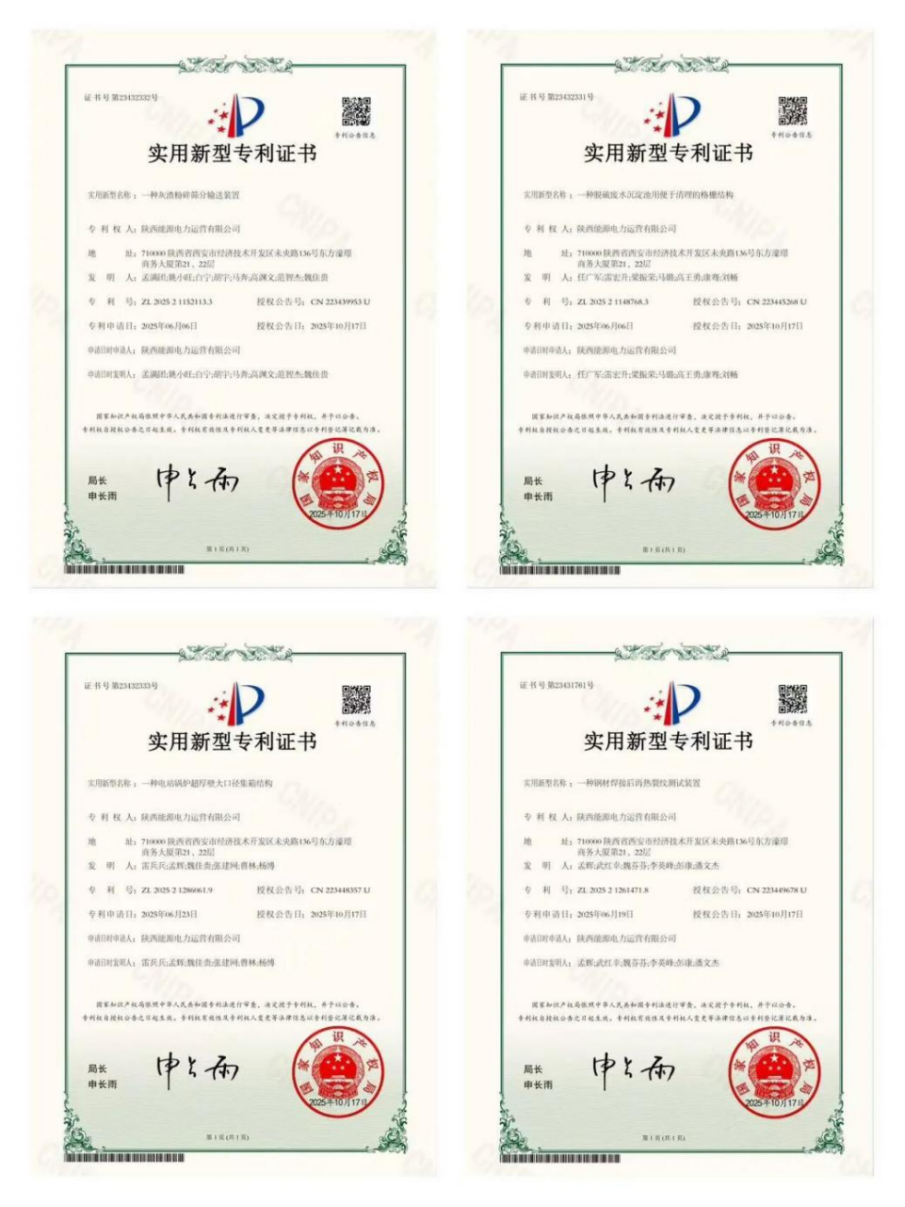 “一種鋼材焊接后再熱裂紋測(cè)試裝置”可快速、精準(zhǔn)檢測(cè)焊縫風(fēng)險(xiǎn),提升了設(shè)備長(zhǎng)期運(yùn)行的可靠性;“一種電站鍋爐超厚壁大口徑集箱結(jié)構(gòu)”有效解決了行業(yè)內(nèi)在焊接難度和結(jié)構(gòu)穩(wěn)定性方面的共性難題; “一種灰渣粉碎篩分輸送裝置”實(shí)現(xiàn)了灰渣處理的一體化與資源化,助力綠色低碳發(fā)展;“一種脫硫廢水沉淀池用便于清理的格柵結(jié)構(gòu)”通過(guò)優(yōu)化設(shè)計(jì),顯著提升環(huán)保系統(tǒng)運(yùn)行效率,為火電企業(yè)環(huán)保達(dá)標(biāo)提供了實(shí)用化技術(shù)解決方案。