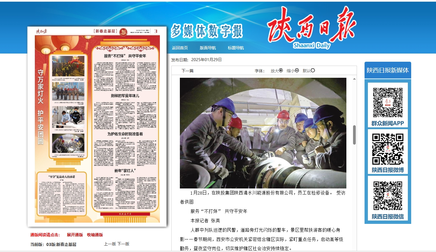 陜西日報 | 清水川能源:守萬家燈火 護平安團圓