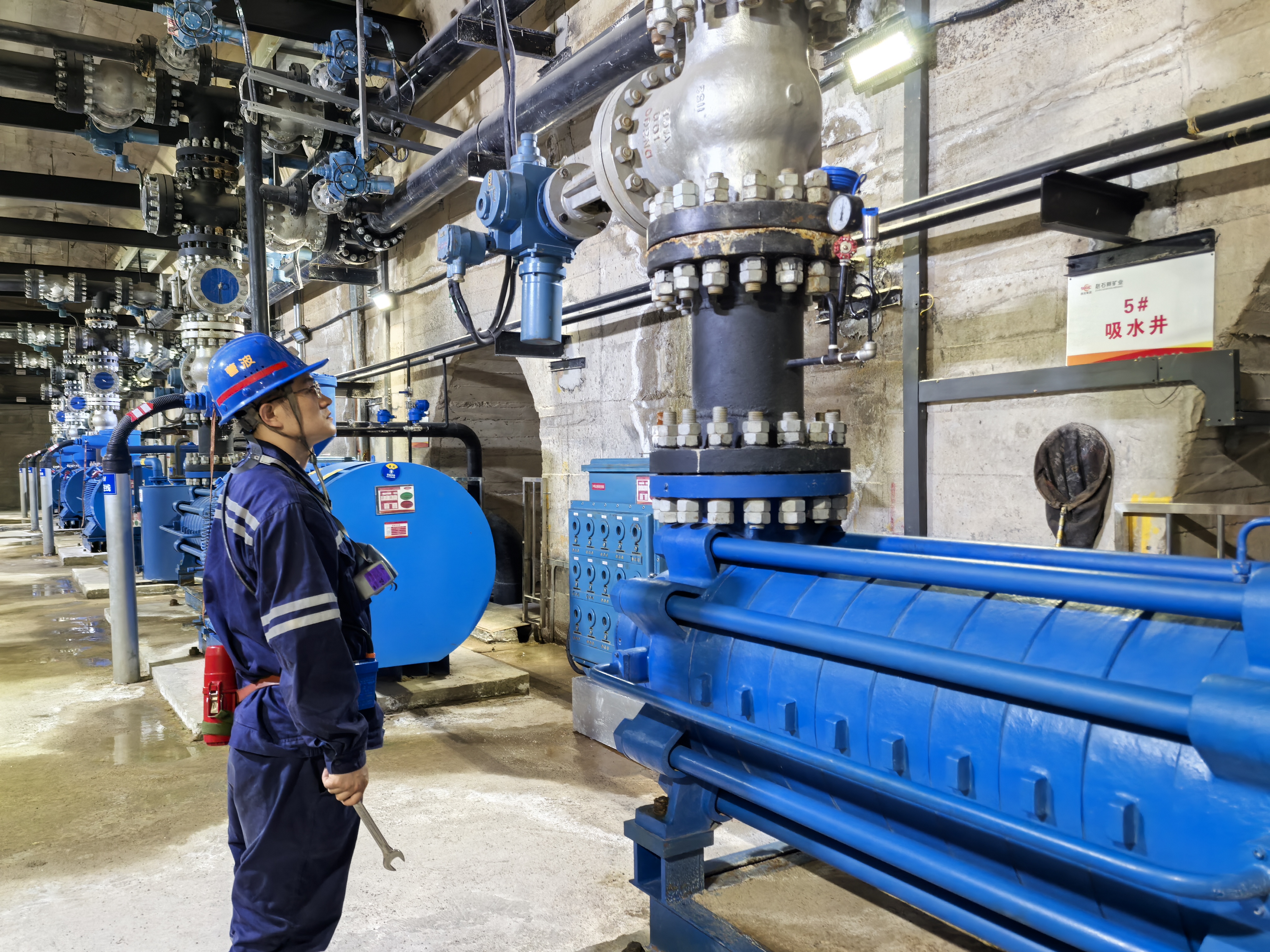 水泵房轟鳴作響,閥門壓力表指針穩穩停在5兆帕。值班水泵工屏息凝神,開啟排水閥門,確保井下水倉水位始終低于警戒線。“多排一方水,井下就多一份安全。”他們說。