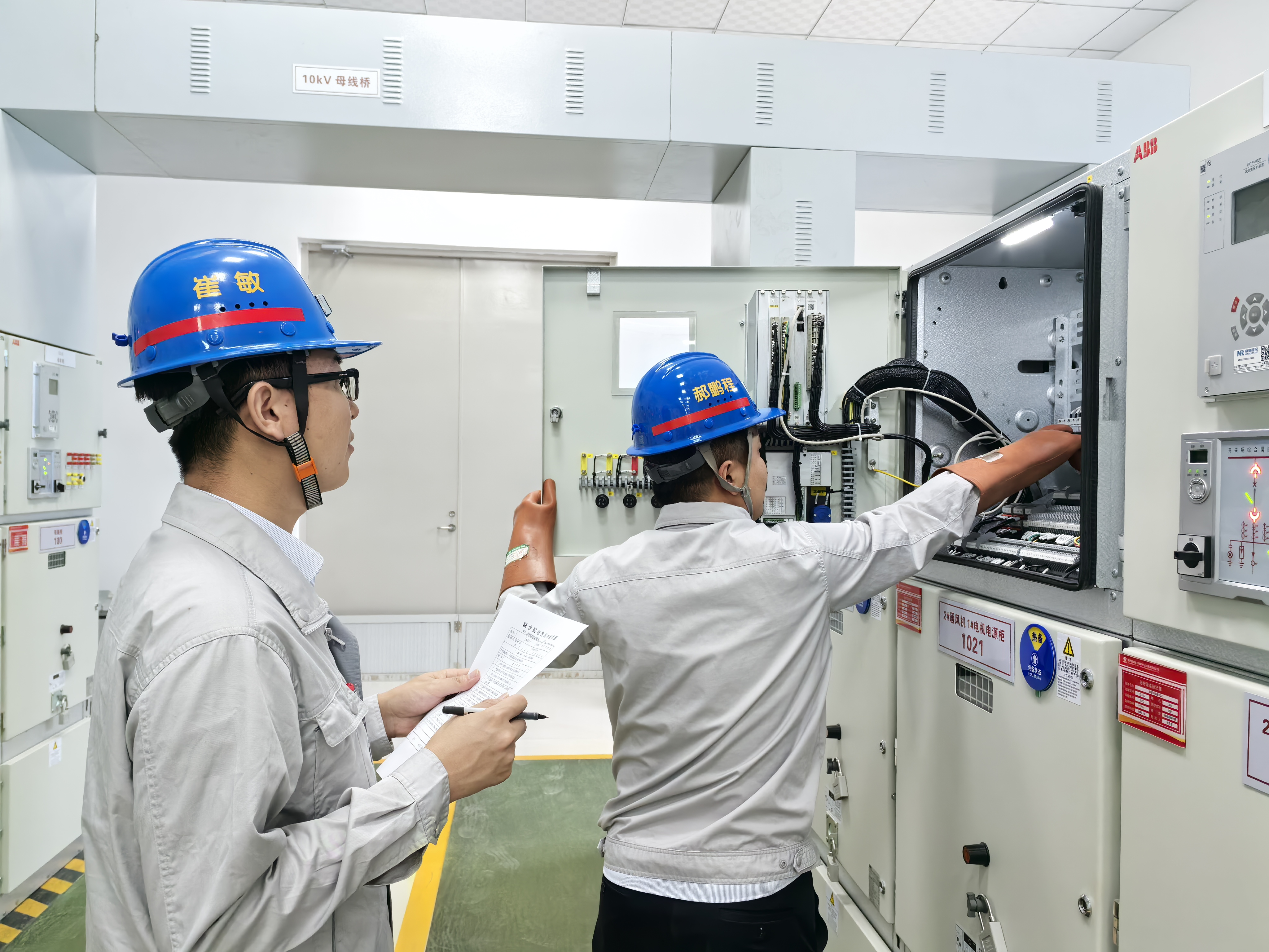 聯合配電室內,操作票、絕緣手套、開關操作把手一字排開。值班員崔敏與操作人“唱票復誦”,完成1021開關熱備用轉檢修。每一次拉閘、合閘,都是一次精準的操作——“零失誤”是他們給自己定下的標準。