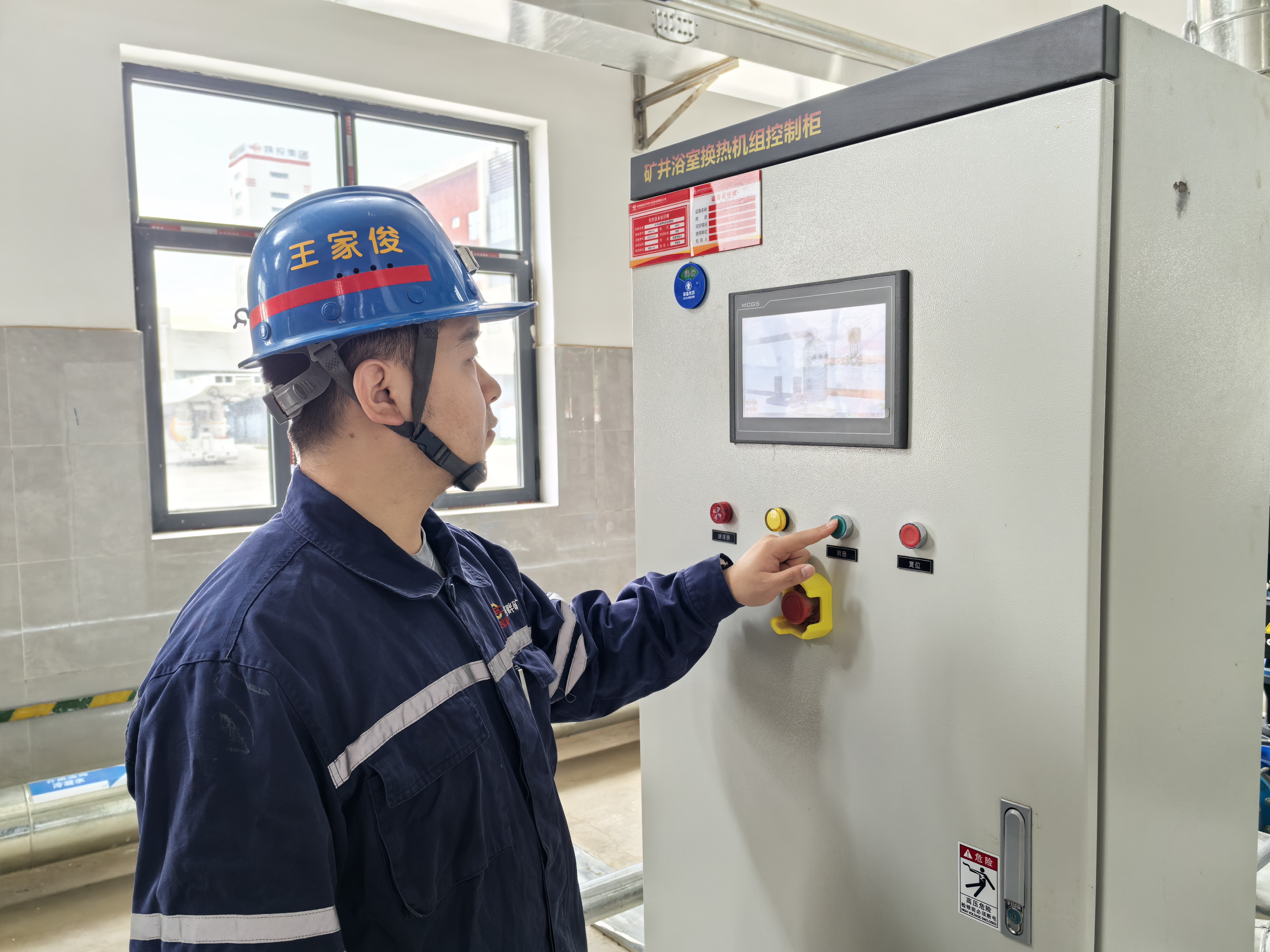 蒸汽管道嗡嗡作響,換熱機組將55℃熱水送入澡堂。讓剛升井的職工們沖去煤塵,“洗個熱水澡,一天的疲憊都留在井下了?!?/p>