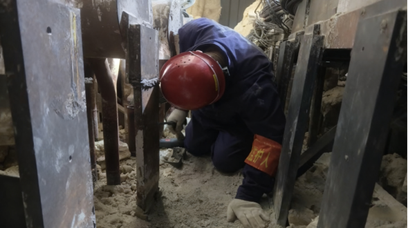 粉塵中的“跪姿” 筑牢安全的防線