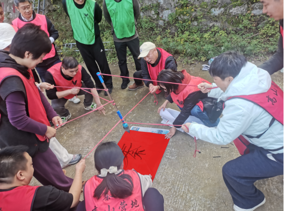 活動(dòng)現(xiàn)場(chǎng),秦嶺層林盡染的秋景與職工們的歡聲笑語(yǔ)相互映襯。首個(gè)游戲“神筆馬良”拉開(kāi)序幕,各小組職工需在蒙眼狀態(tài)下,共同握住綁有毛筆的長(zhǎng)繩,協(xié)作完成指定文字書(shū)寫(xiě)。過(guò)程中,大家不斷溝通調(diào)整力度與方向,從最初的手忙腳亂到逐漸默契配合,最終合力寫(xiě)下“團(tuán)結(jié)”“奮進(jìn)”等字樣,不僅考驗(yàn)了團(tuán)隊(duì)的協(xié)同能力,更讓大家深刻體會(huì)到“心往一處想、勁往一處使”的重要性。